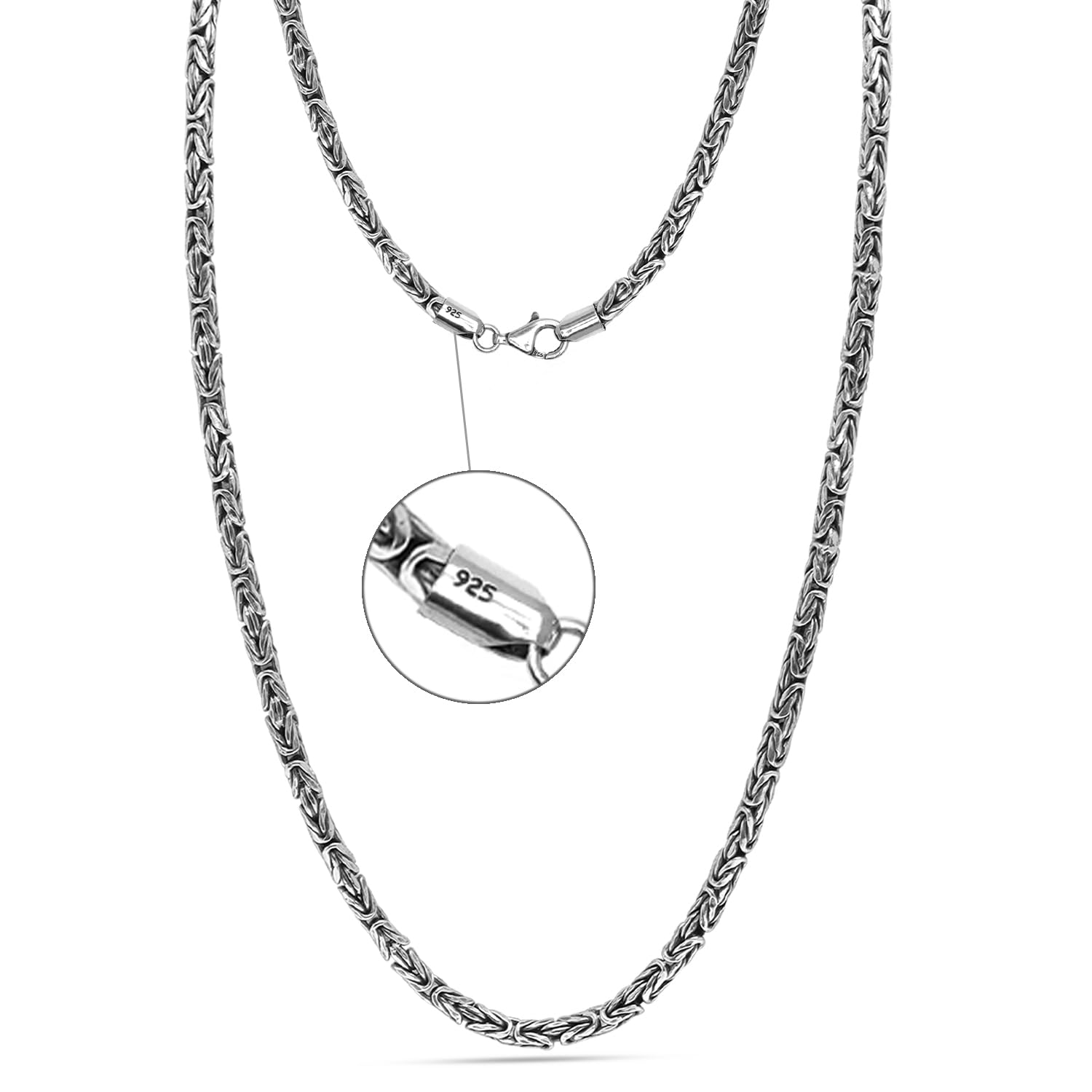 925 Sterling Silver Italian Round Handmade Classic Antique Byzantine Link Chain Necklace for Men Women 0.25 CM