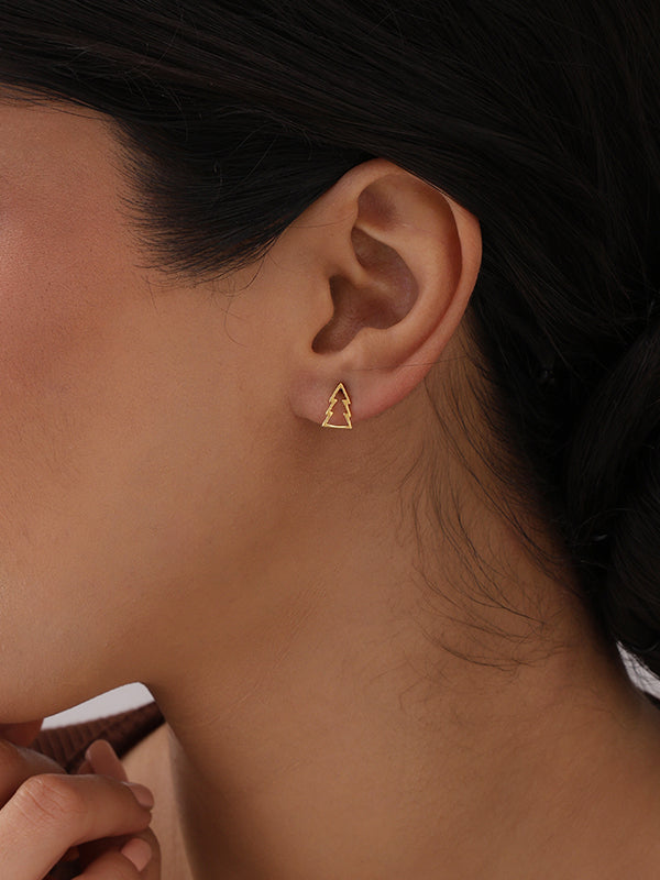 Golden Noel Tree Stud Earrings