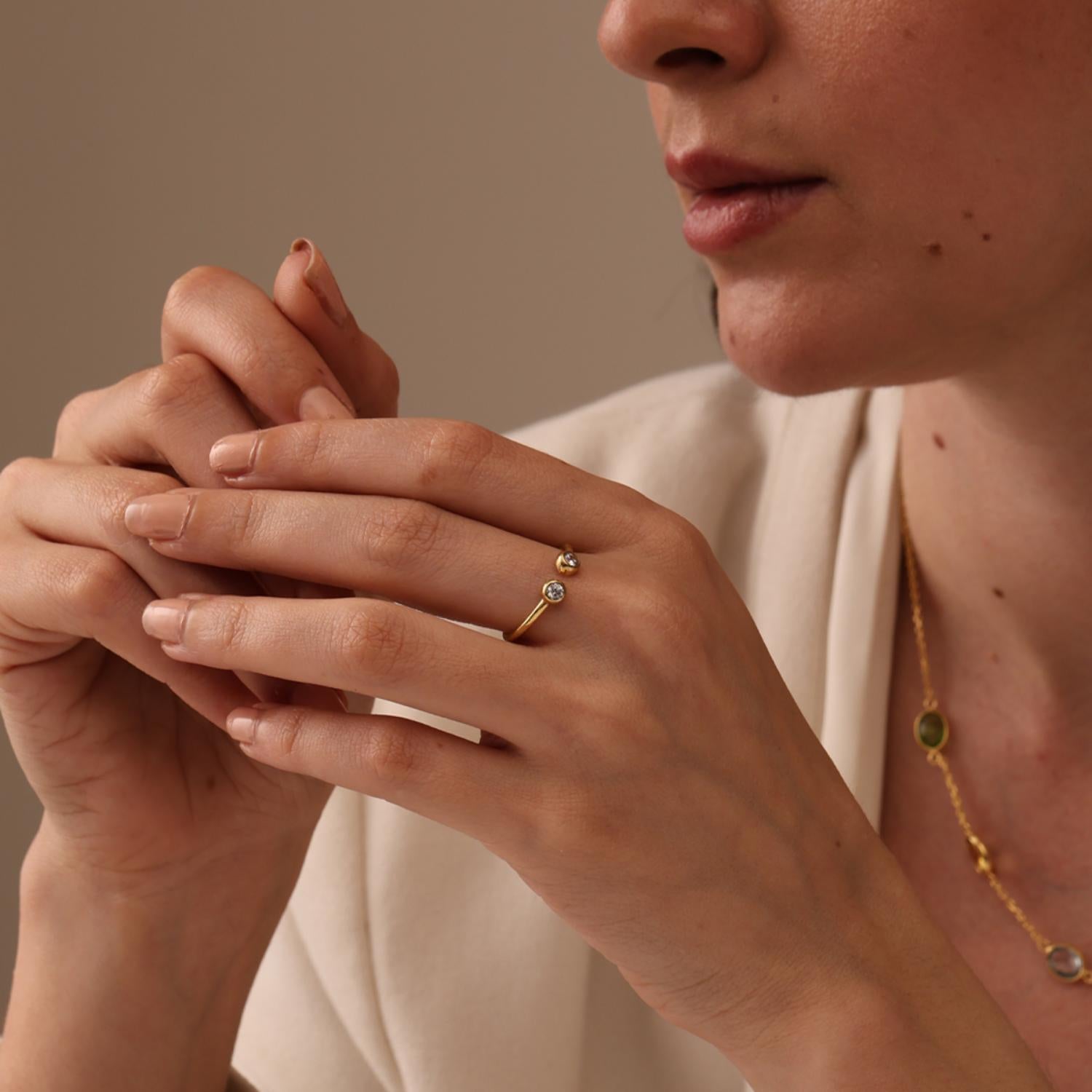 925 Sterling Silver 14K Gold-Plated Infinite Elements Round Zirconia Adjustable Open Band Ring for Women