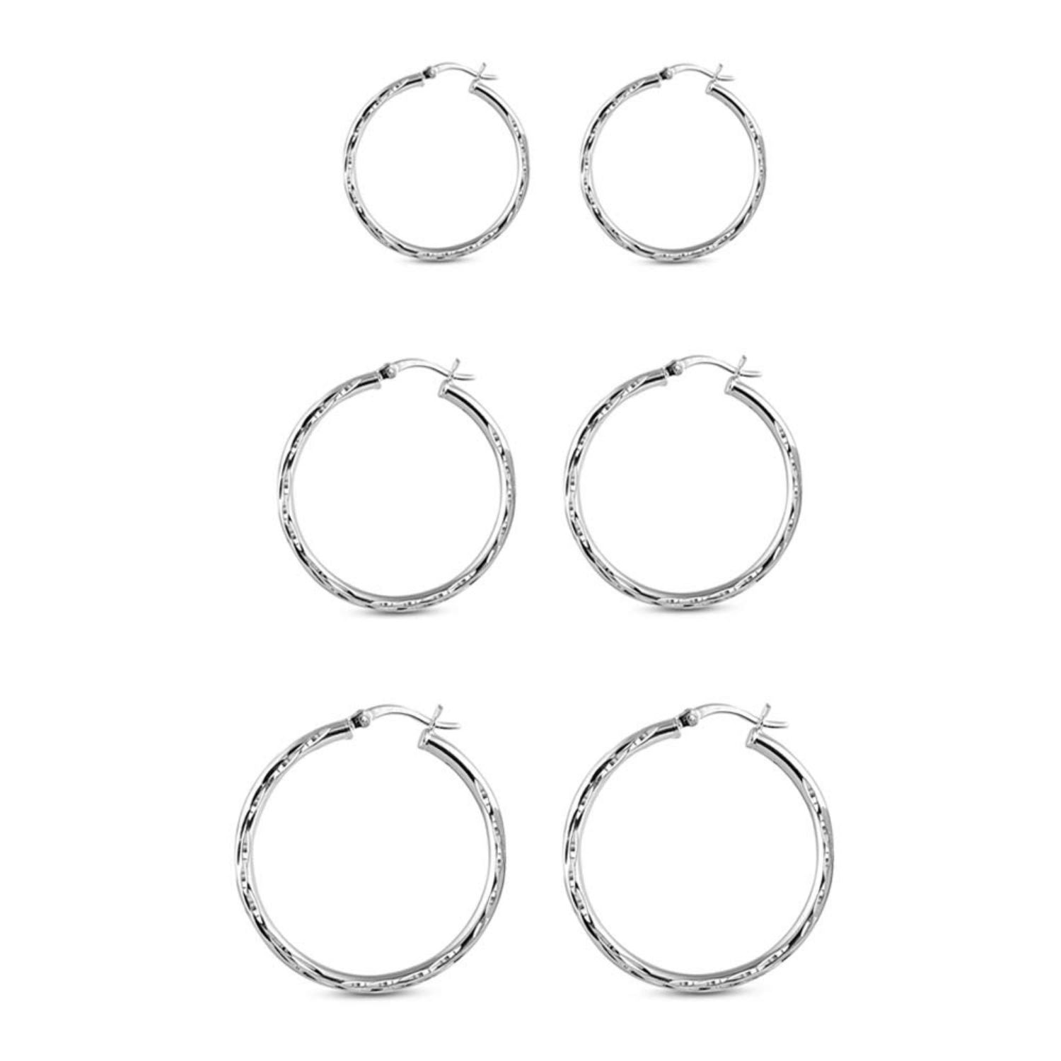 925 Sterling Silver Diamond Cut Hoop Earrings for Women Teen Set of 3 Pairs