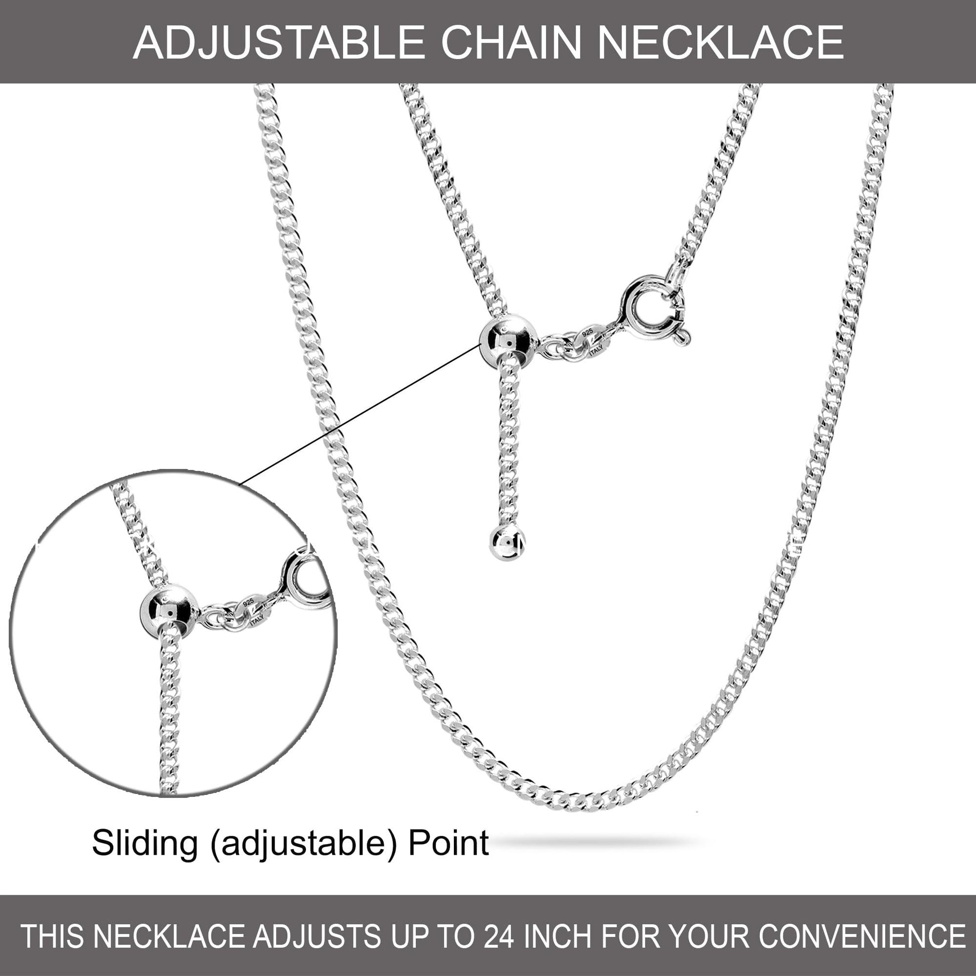 925 Sterling Silver Italian Adjustable Curb Chain Necklace for Women 61 CM