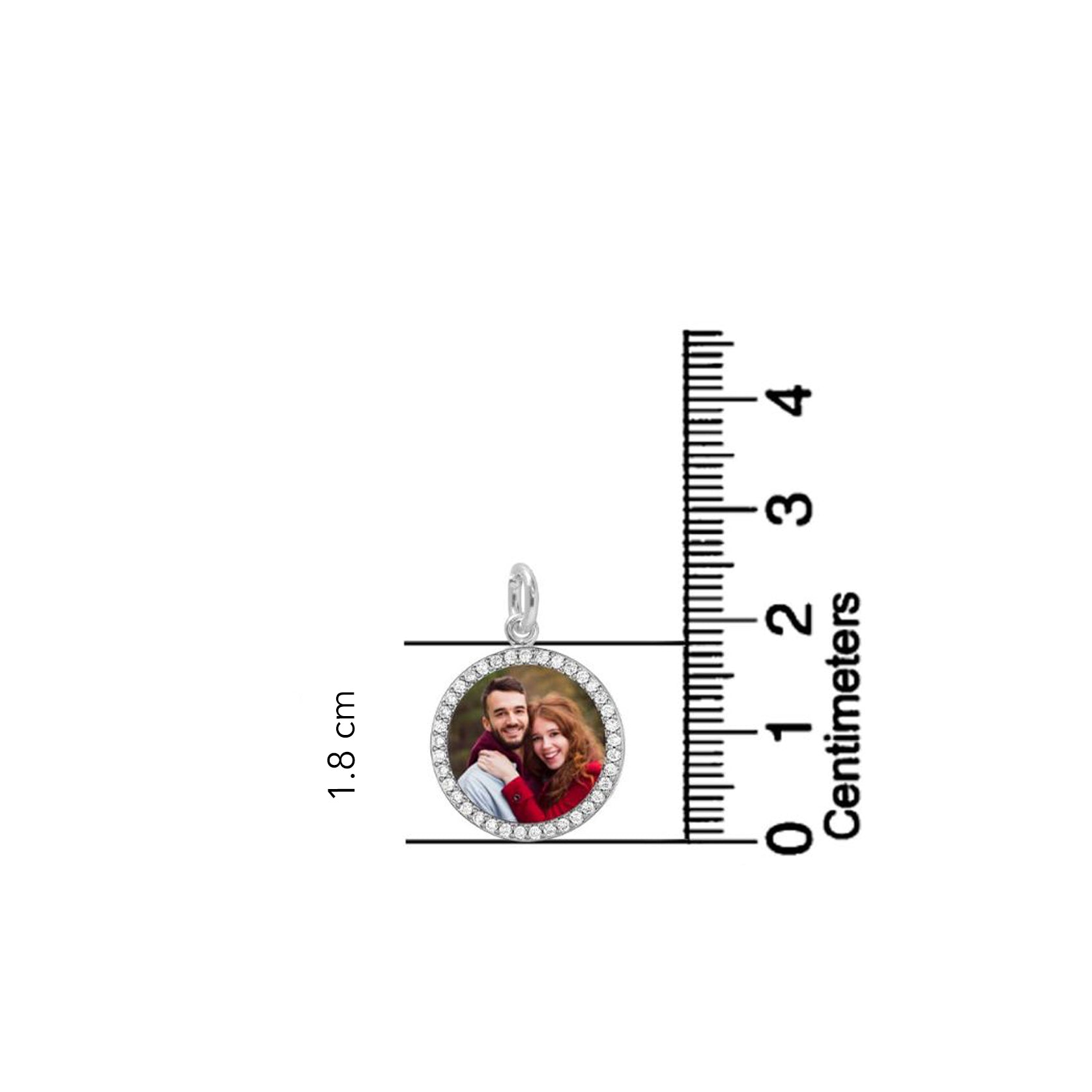 Personalised 925 Sterling Silver Engraved Text Love Infinity on Back With Custom Photo on Front CZ Frame Round Pendant Necklace for Girls and Women
