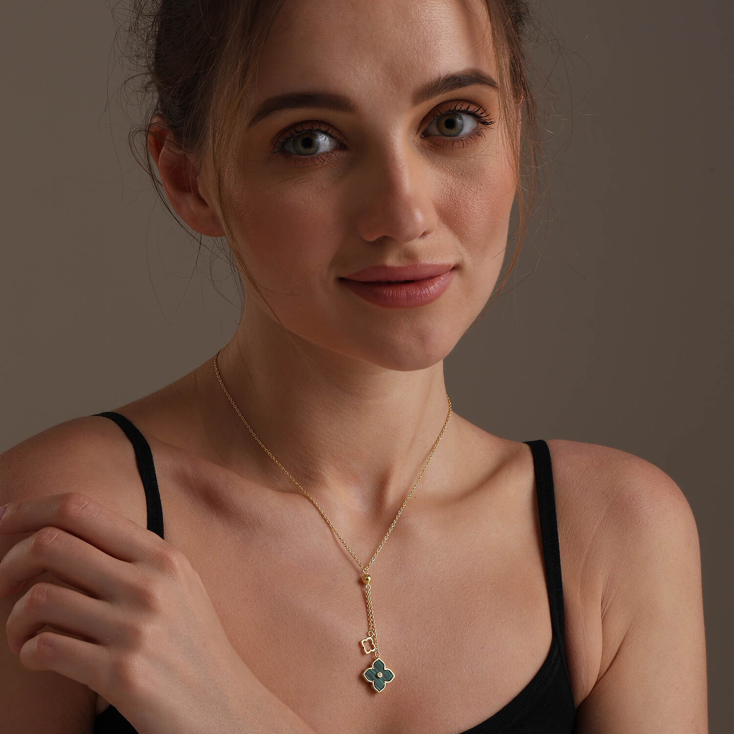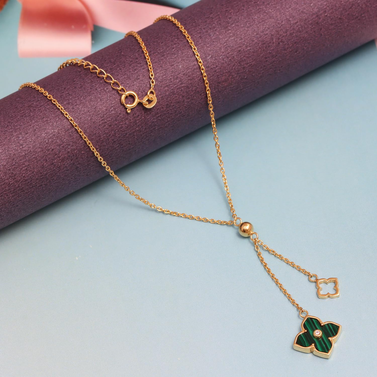 925 Sterling Silver Adjustable Mother of Pearl & Cubic Zirconia Double Flower Pendant Necklace for Women